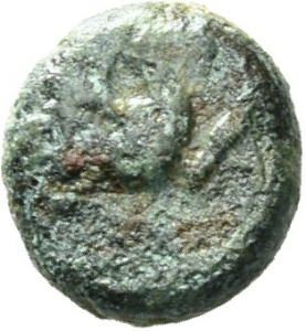 Literatur: D. S. Lenger, Les monnaies grecques et provinciales romaines en bronze trouvées a Assos (Diss. Phil. 2009), 32 Nr. 3 (dieses Stück, Chalkous, ca. 415-410 v. Chr.).